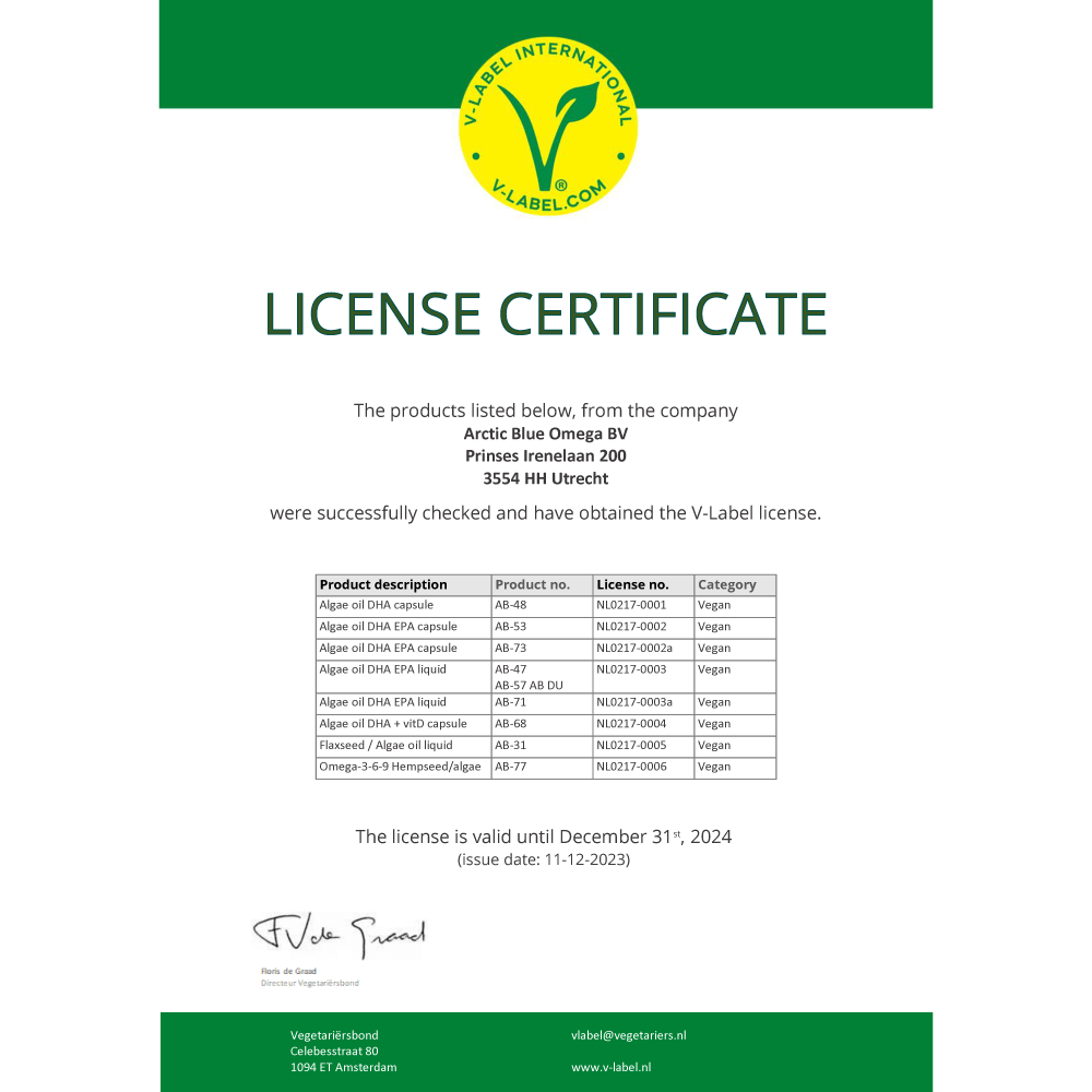 1 dosering bevat 350 mg DHA, 170 mg EPA en 30 mg DPA.