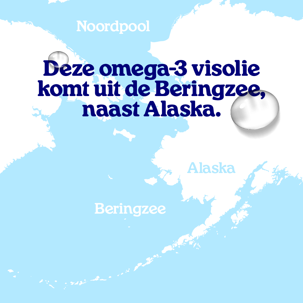 De visolie komt uit Alaska en wordt gemaakt van de filet-snijresten van wilde vis.